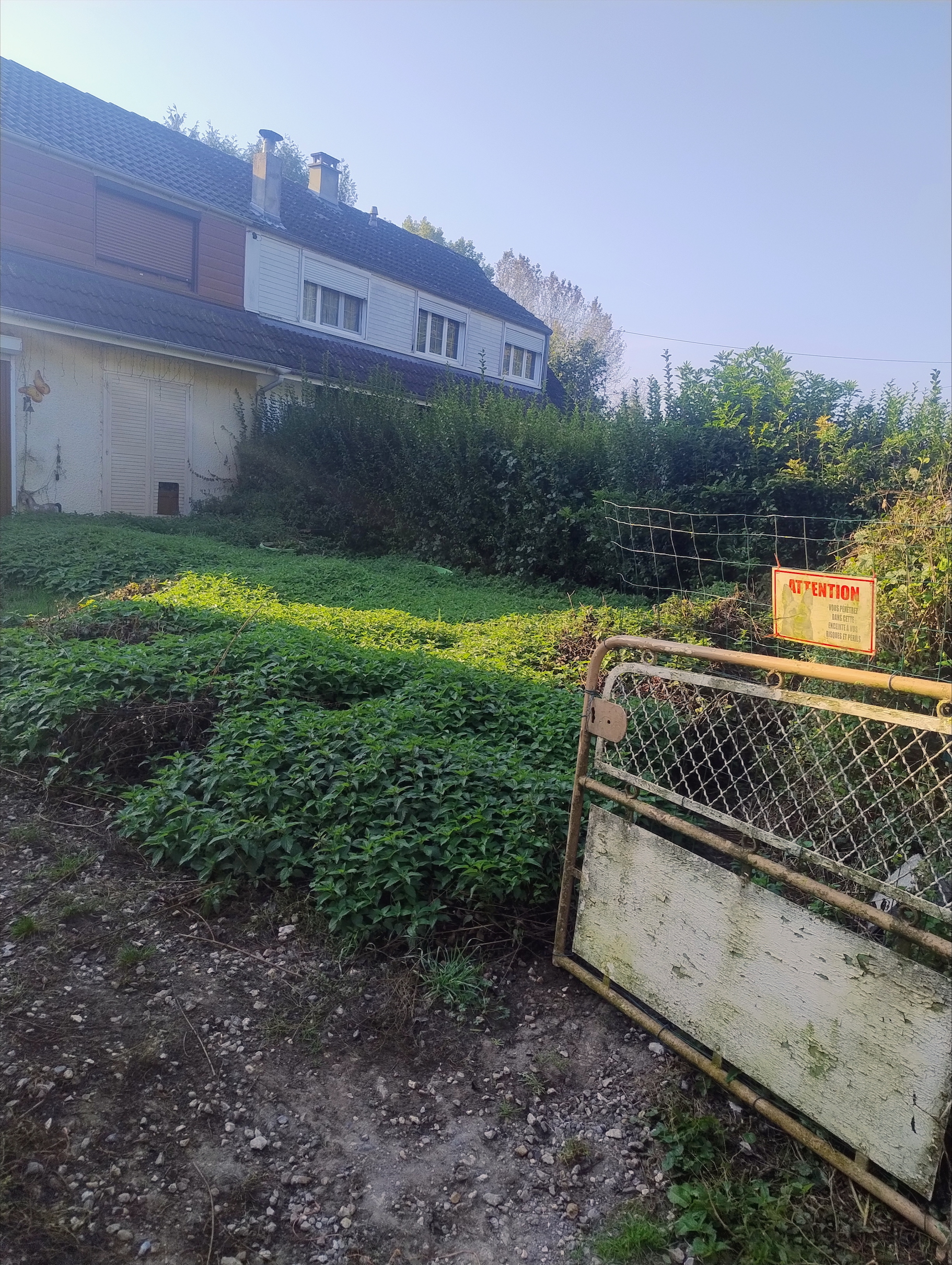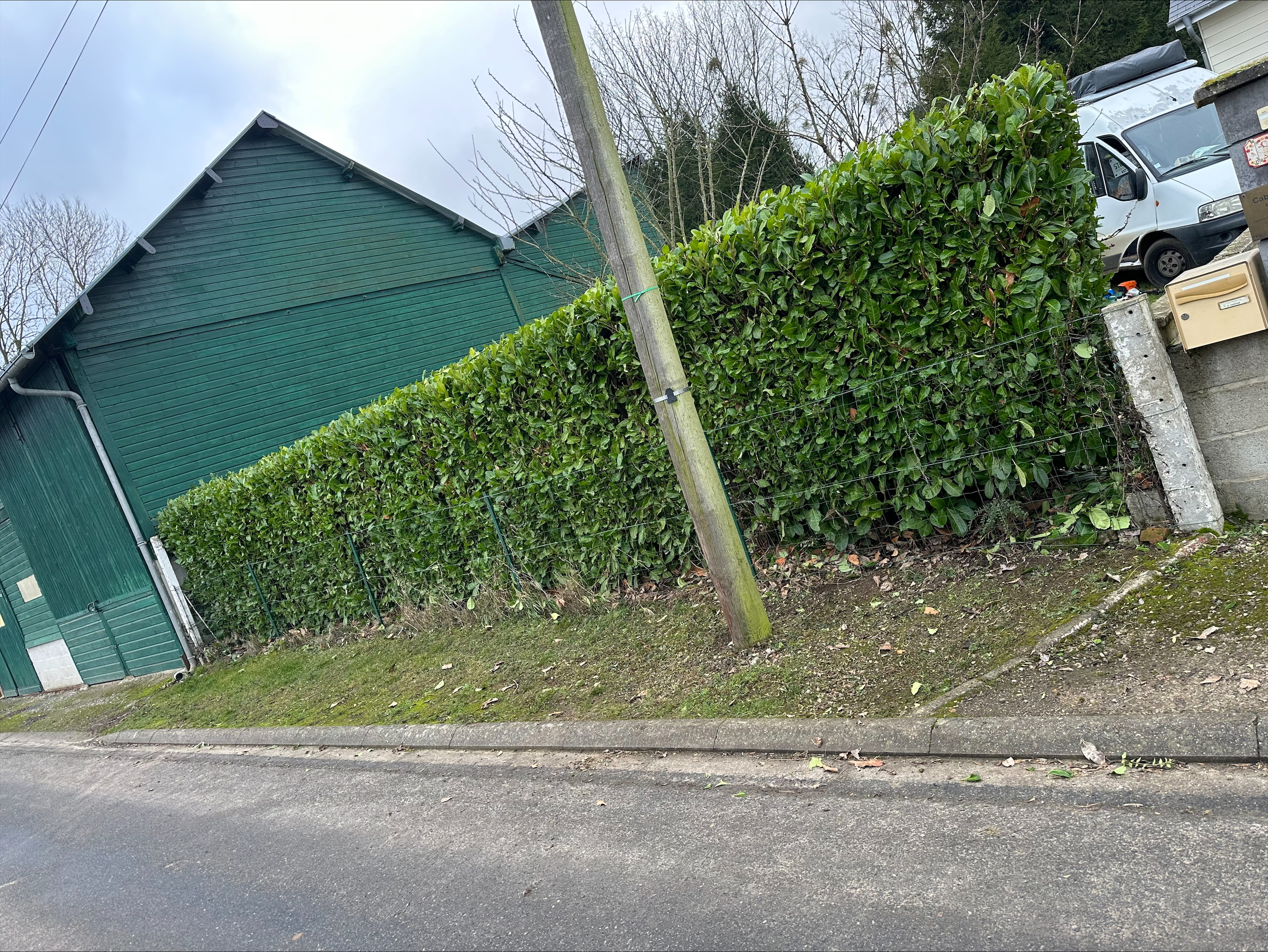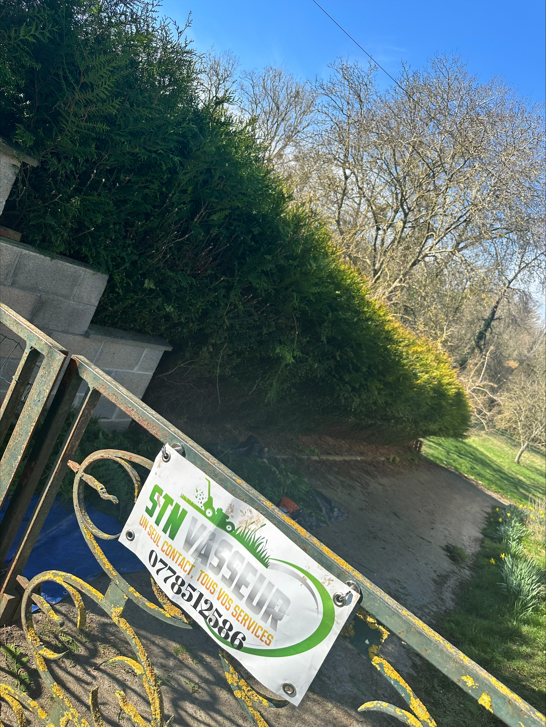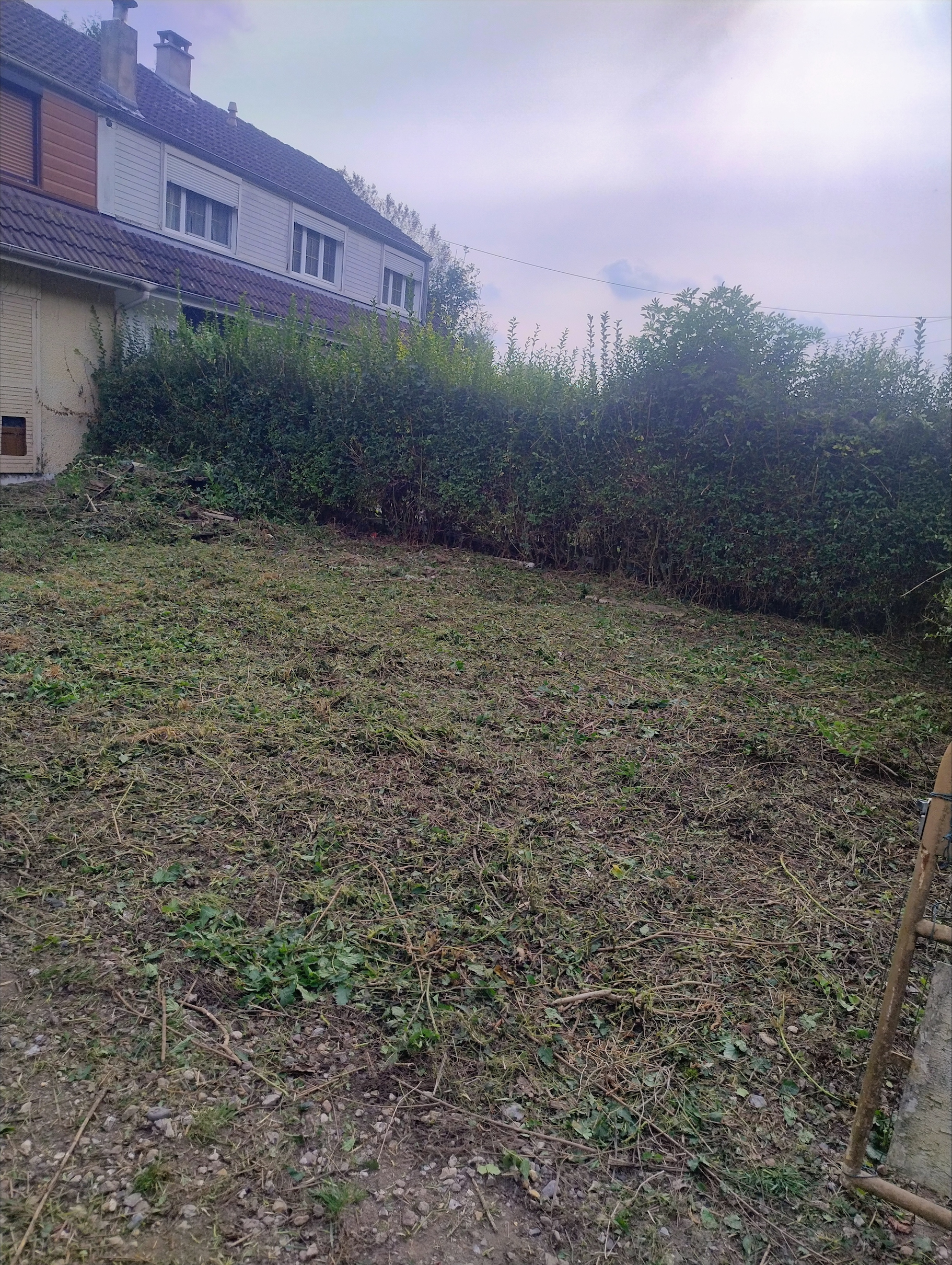 Haies, arbres et pelouse laissés nets.