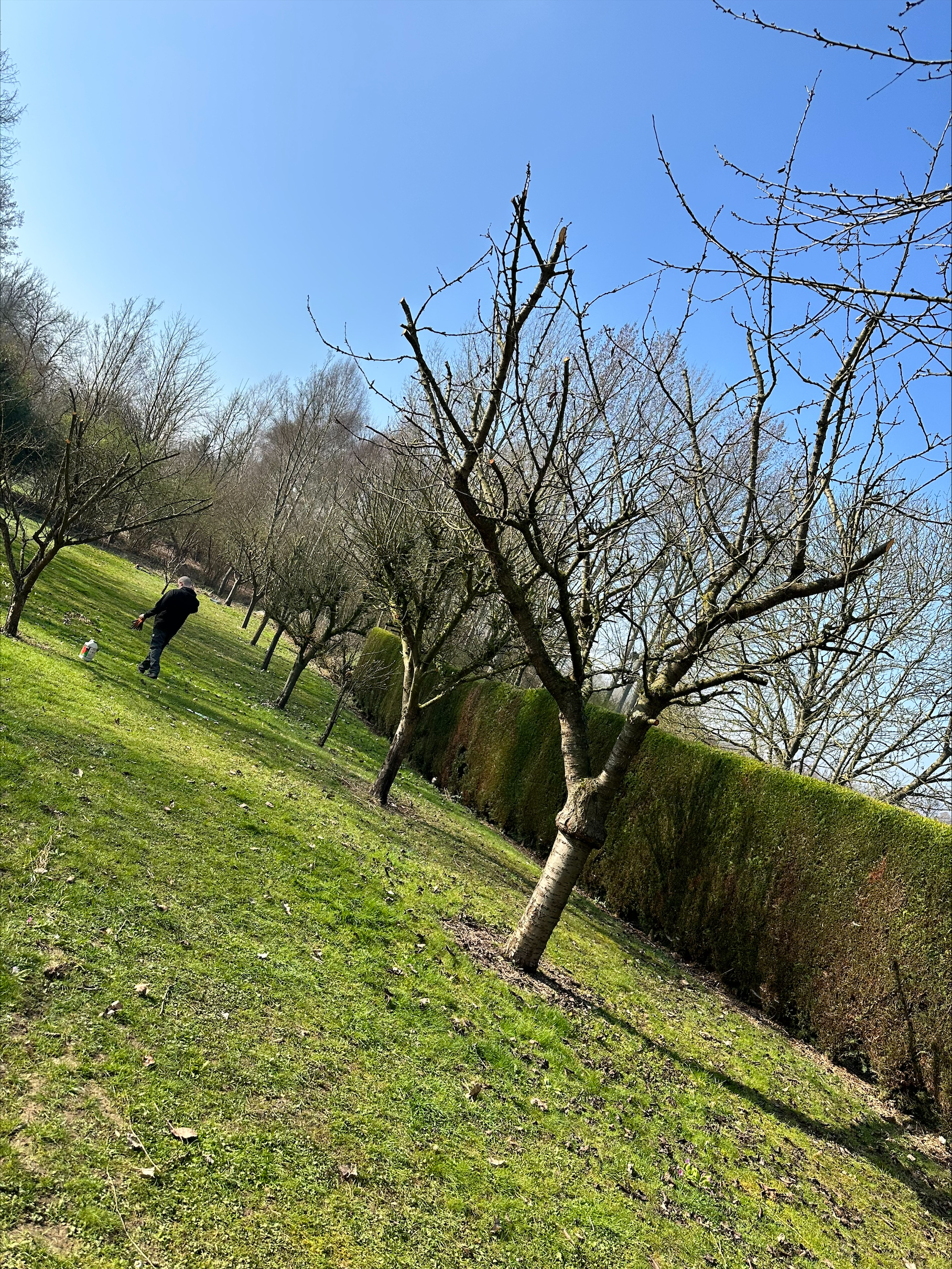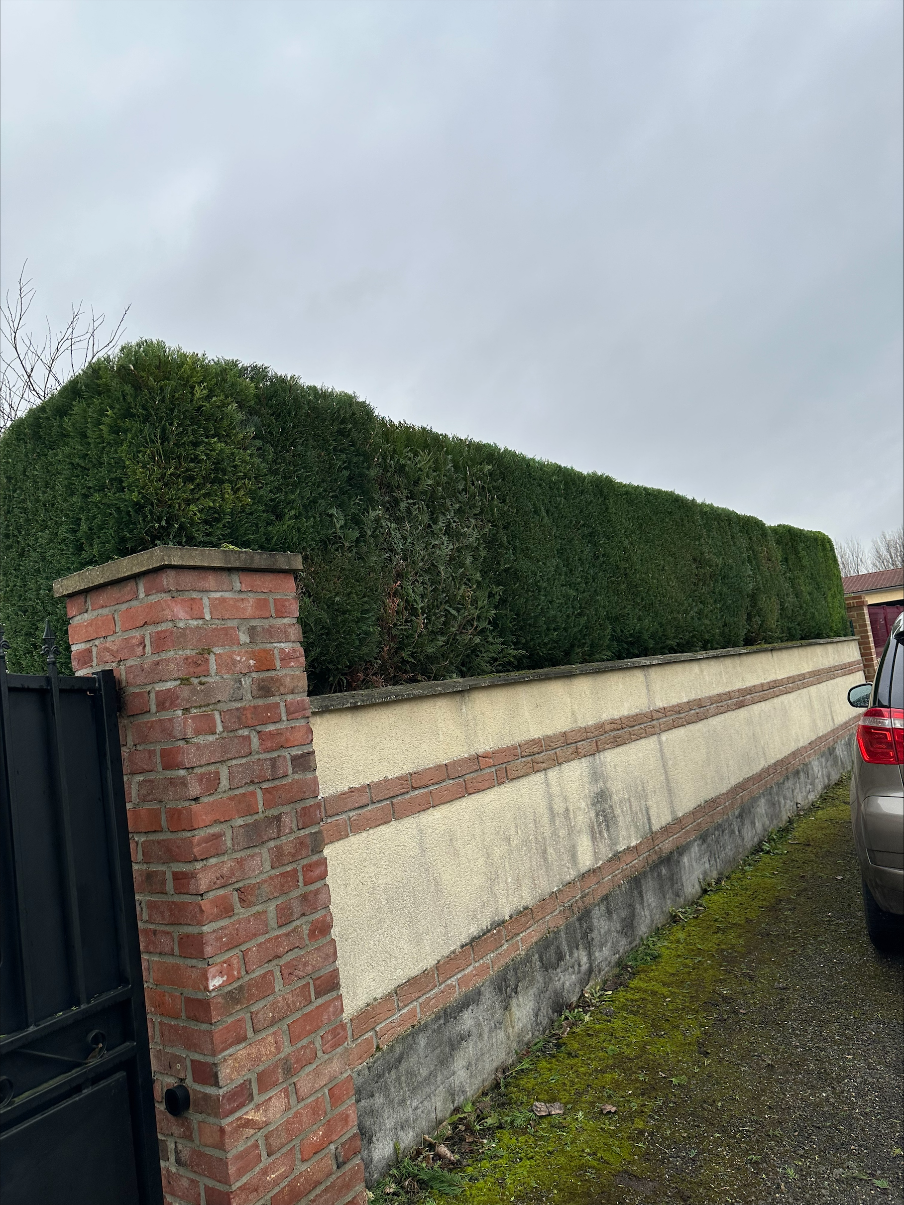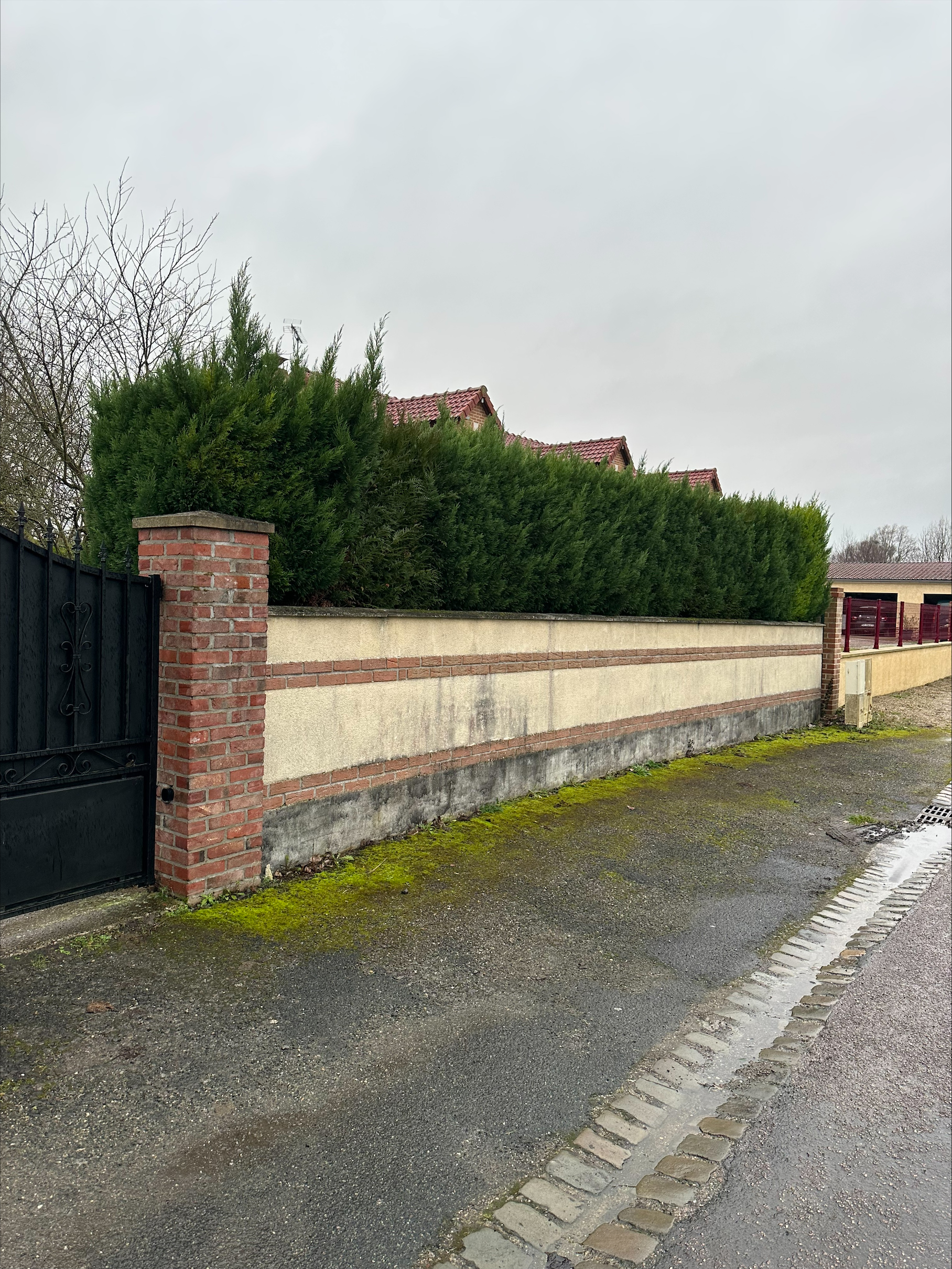 Haies, arbres et pelouse laissés nets.
