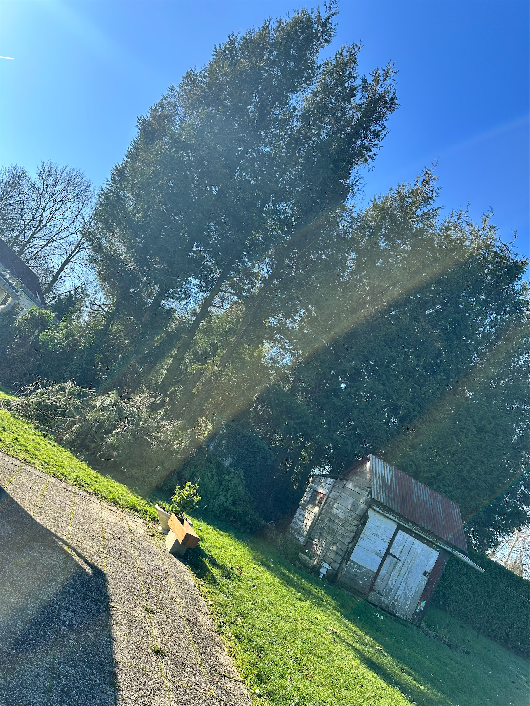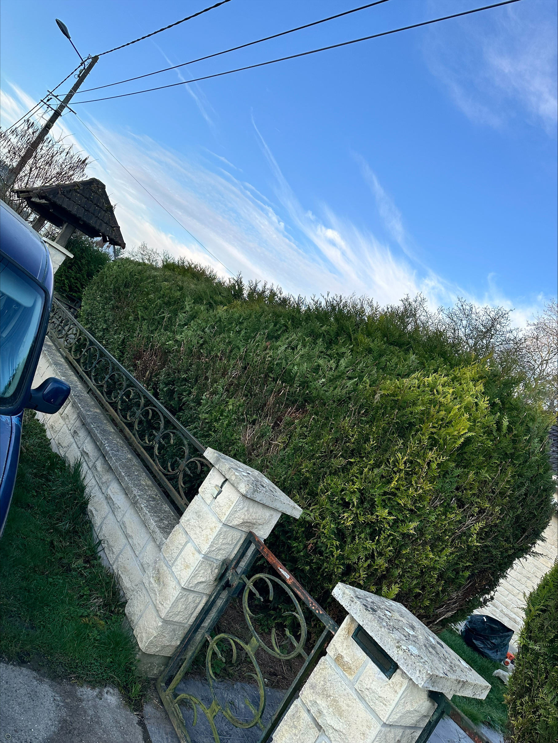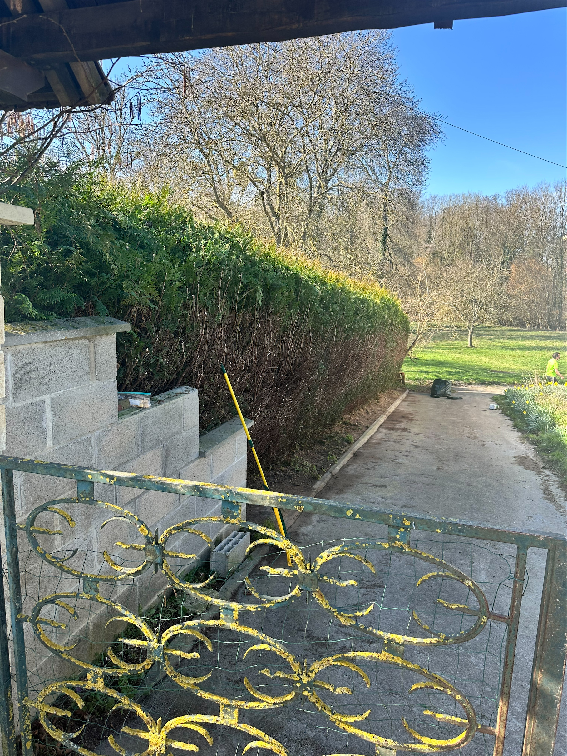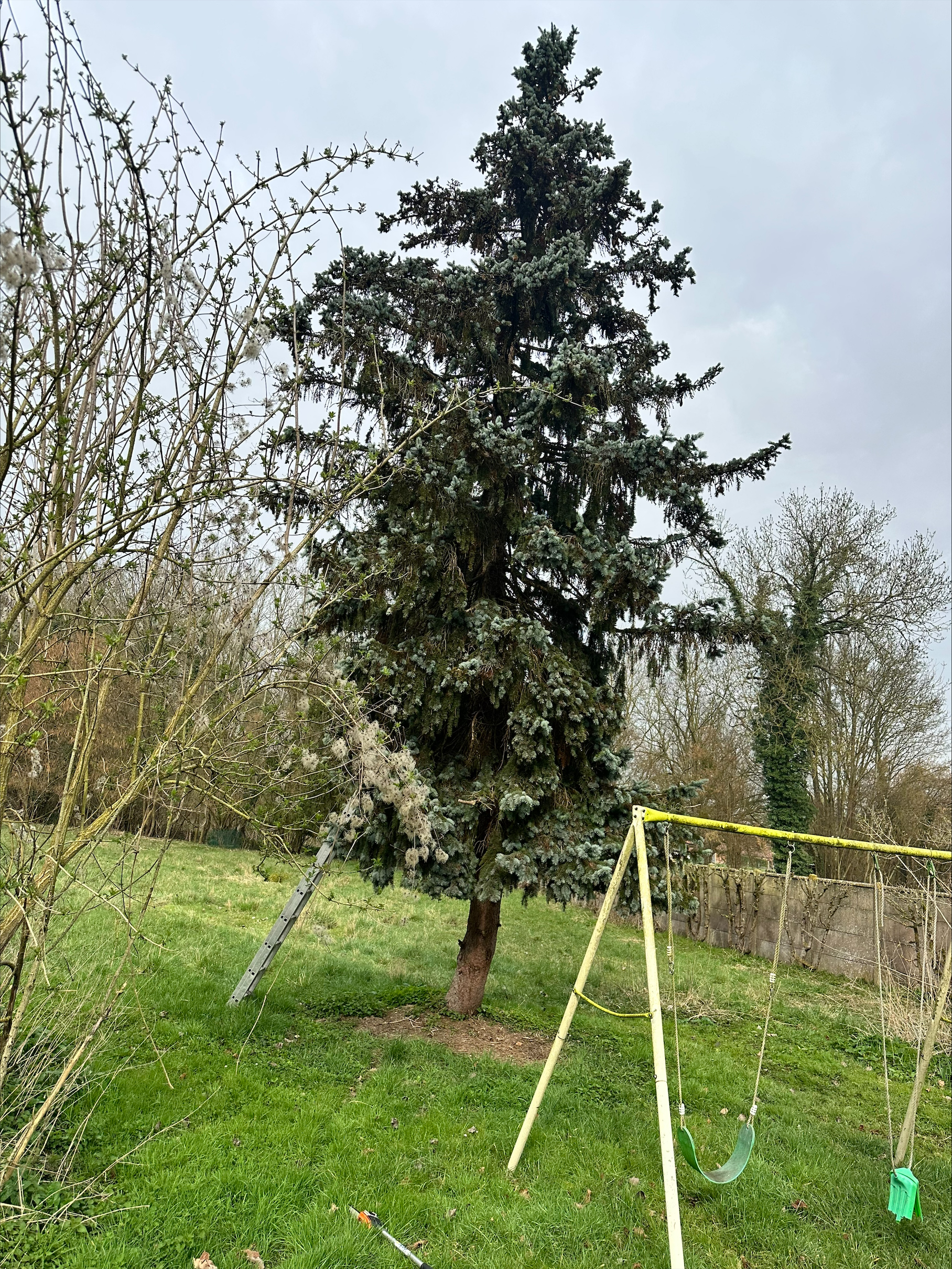 Haies, arbres et pelouse laissés nets.